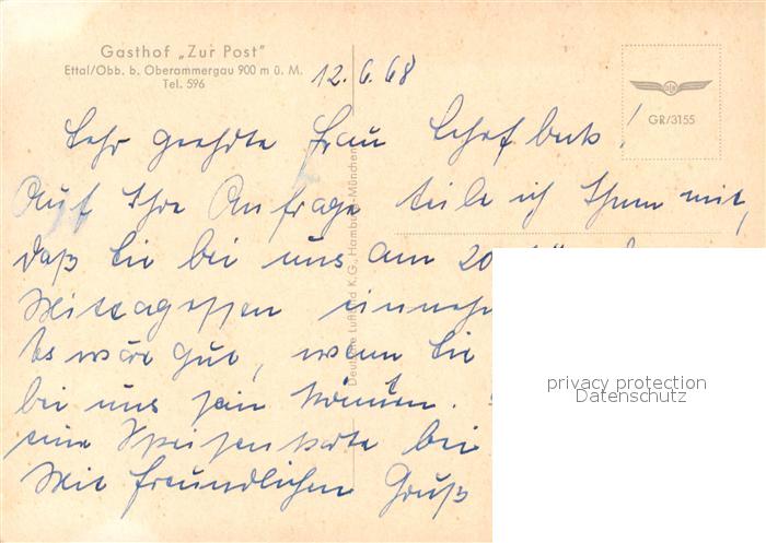 73574826 Ettal Gasthof Zur Post postalisch nicht gelaufen Erhaltung siehe scans [FriedD77] KatCode: 11110009180115