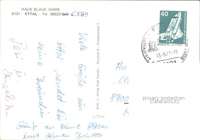 72297373 alte Postkarte Ettal Haus Blaue Gams Gaestehaus postalisch gelaufen Erhaltung siehe scans KatCode: 11110009180115