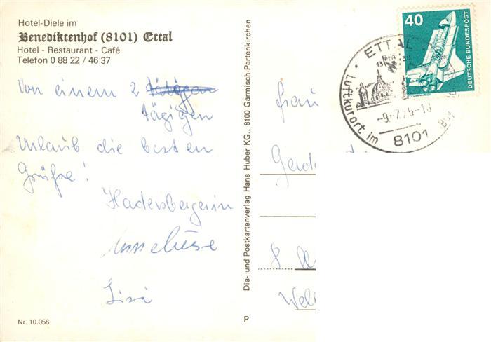 73881589 alte Postkarte Ettal Hotel Diele im Benediktenhof postalisch gelaufen Erhaltung siehe scans [WerneD78] KatCode: 11110009180115