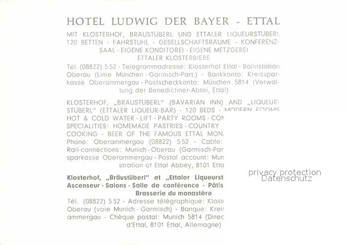 72916003 Ettal Hotel Ludwig Klosterhof postalisch nicht gelaufen Keine Postkarte (siehe scan) Erhaltung siehe scans [NatalD47] KatCode: 11110009180115