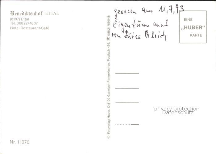 72599681 Ettal Hotel Restaurant Benediktenhof Huber Karte Nr 11070 postalisch nicht gelaufen Erhaltung siehe scans [FriedD77] KatCode: 11110009180115