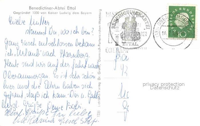 72841967 alte Postkarte Ettal Kloster Abteikirche Orgel Altaere Deckengemaelde postalisch gelaufen Erhaltung siehe scans [FriedD77] KatCode: 11110009180115