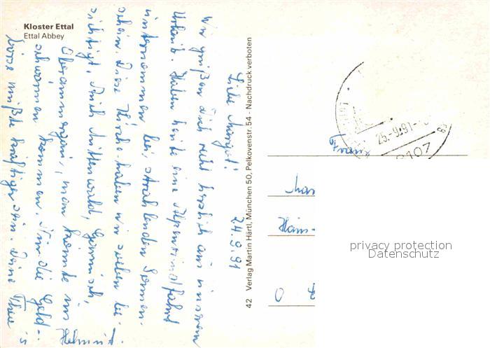 72617272 alte Postkarte Ettal Kloster Ettal postalisch gelaufen Erhaltung siehe scans [WerneD78] KatCode: 11110009180115
