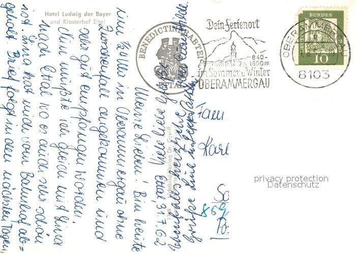 73117013 alte Postkarte Ettal Klosterhof Hotel Ludwig der Bayer postalisch gelaufen Erhaltung siehe scans [LiesaD40] KatCode: 11110009180115