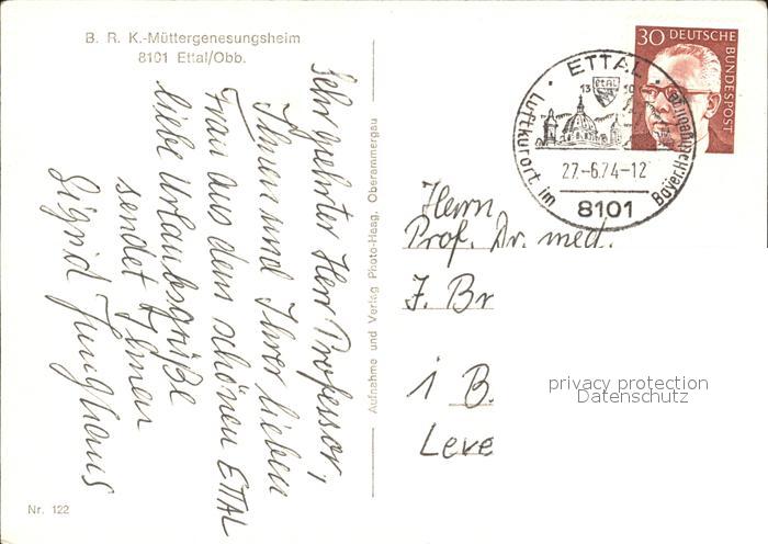 72571646 alte Postkarte Ettal Muettergenesungsheim postalisch gelaufen Erhaltung siehe scans [LiesaD40] KatCode: 11110009180115