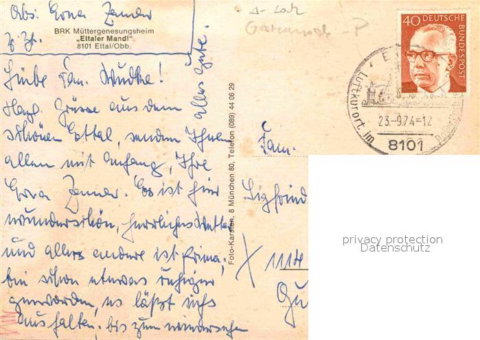 72905933 alte Postkarte Ettal Muettergenesungsheim postalisch gelaufen Erhaltung siehe scans [AndreD76] KatCode: 11110009180115