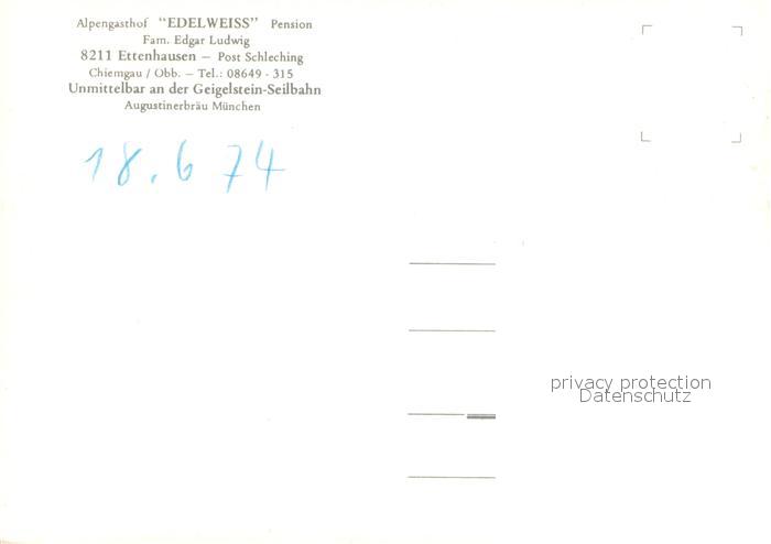 73652225 Ettenhausen Schleching Alpengasthof Edelweiss postalisch nicht gelaufen Erhaltung siehe scans [WerneD78] KatCode: 11110009189141