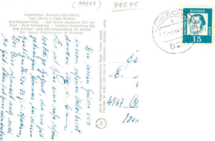73948873 alte Postkarte Ettenhausen Schleching Alpenhotel Edelweiss Restaurant postalisch gelaufen Erhaltung siehe scans [FriedD77] KatCode: 11110009189141