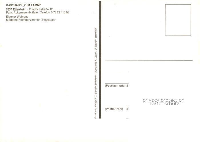 73124516 Ettenheim Gasthaus zum Lamm postalisch nicht gelaufen Erhaltung siehe scans [KathaD81] KatCode: 11110008317026
