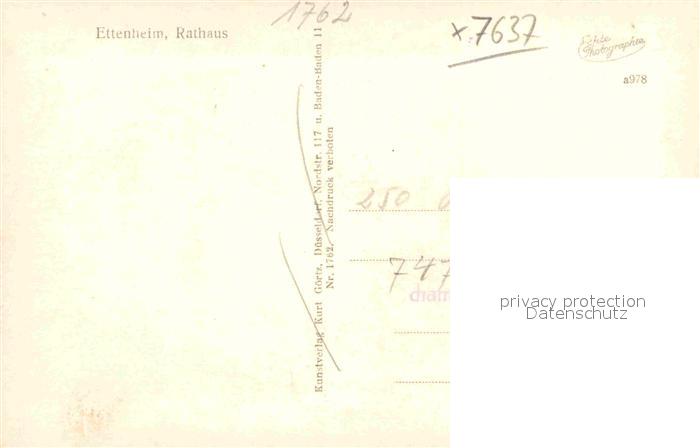 42833398 Ettenheim Rathaus postalisch nicht gelaufen Erhaltung siehe scans [WerneD78] KatCode: 11110008317026
