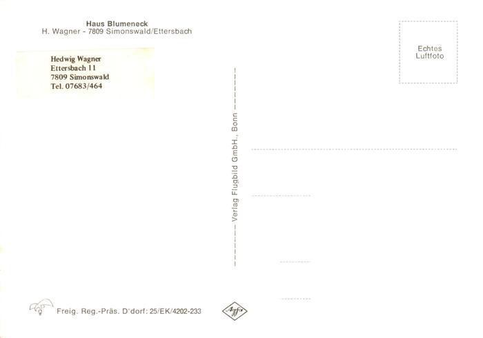 73863778 Ettersbach Simonswald Gaestehaus Pension Haus Blumeneck postalisch nicht gelaufen Fliegeraufnahme Erhaltung siehe scans [FriedD77] Fliegeraufnahme Frie Katcode 11110008316042