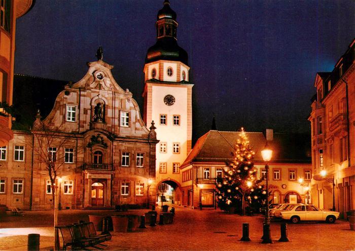 73923212 Ettlingen Blick auf das Rathaus zur Weihnachtszeit unter Beleuchtung Nachtaufnahme postalisch nicht gelaufen Erhaltung siehe scans [FriedD77] KatCode: 11110008215017