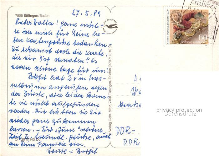 73209153 alte Postkarte Ettlingen Bruecke Schloss postalisch gelaufen Erhaltung siehe scans [NatalD47] KatCode: 11110008215017