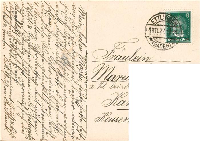 73934664 alte Postkarte Ettlingen Fliegeraufnahme postalisch gelaufen Erhaltung siehe scans [FriedD77] KatCode: 11110008215017