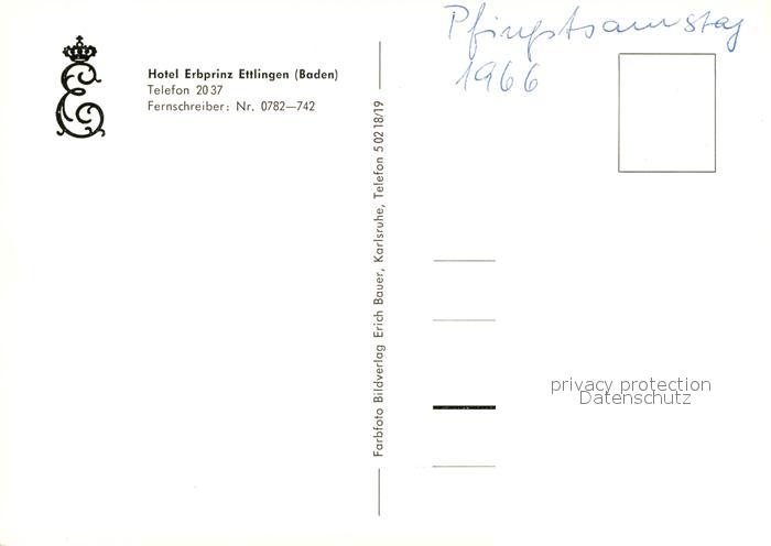 73542937 Ettlingen Hotel Erbprinz postalisch nicht gelaufen Erhaltung siehe scans [FriedD77] KatCode: 11110008215017