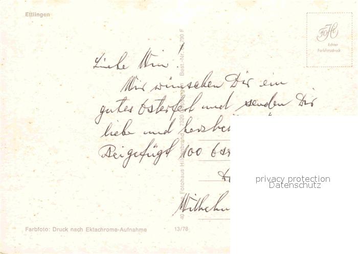 72741930 Ettlingen Kirche postalisch nicht gelaufen Erhaltung siehe scans [WerneD78] KatCode: 11110008215017