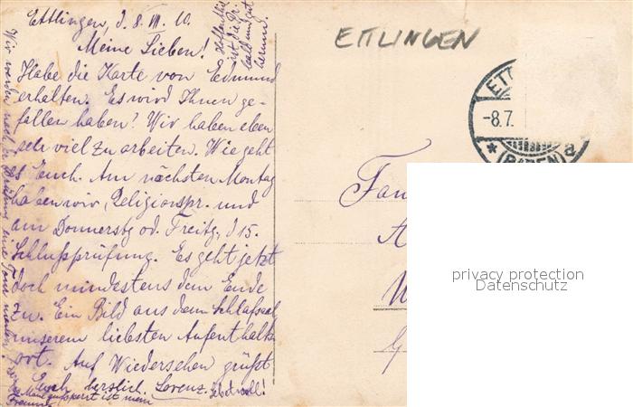 33548624 alte Postkarte Ettlingen Krankenhaus postalisch gelaufen Erhaltung siehe scans [LiesaD40] KatCode: 11110008215017