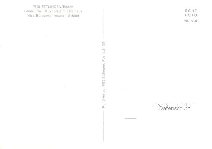 73835656 Ettlingen Lauerturm Kirchplatz mit Rathaus Hist Buergerwehrmann Schloss postalisch nicht gelaufen Erhaltung siehe scans [WerneD78] KatCode: 11110008215017