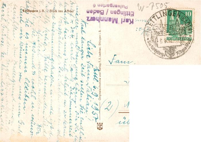 73939981 alte Postkarte Ettlingen Panorama Blick ins Albtal postalisch gelaufen Erhaltung siehe scans [FriedD77] KatCode: 11110008215017