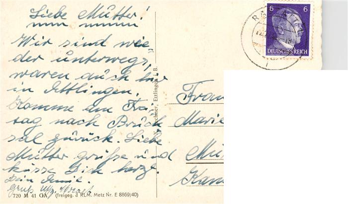 73939648 alte Postkarte Ettlingen Panorama Gasthof zur Sonne postalisch gelaufen Erhaltung siehe scans [FriedD77] KatCode: 11110008215017
