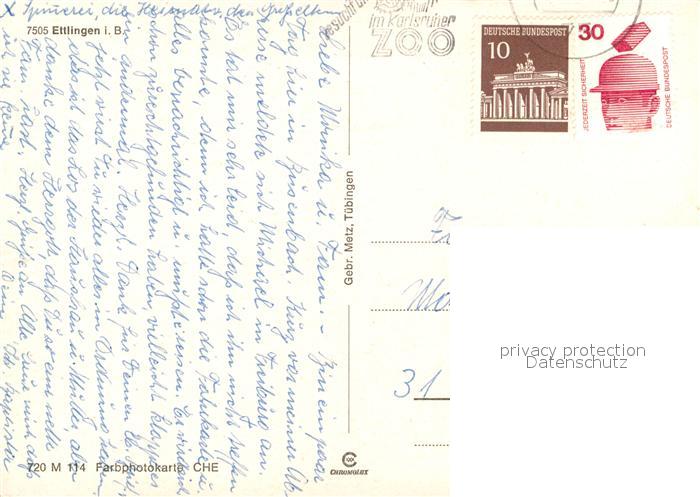 73226695 alte Postkarte Ettlingen Stadtbild mit Kirche postalisch gelaufen Erhaltung siehe scans [FriedD77] KatCode: 11110008215017