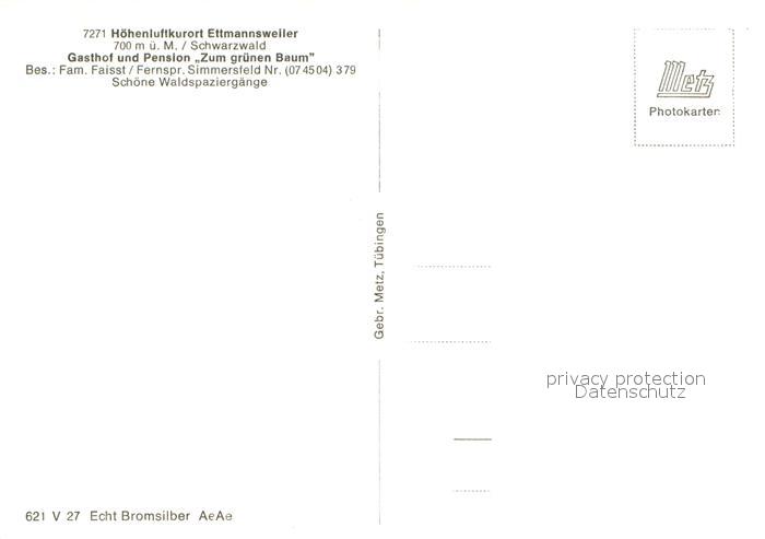 73654164 Ettmannsweiler Gasthaus Pension Zum gruenen Baum Landschaftspanorama Schwarzwald Bromsilber postalisch nicht gelaufen Erhaltung siehe scans [FriedD77] KatCode: 11110008235066
