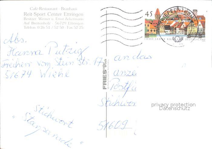 72352216 alte Postkarte Ettringen Eifel Cafe Restaurant Reit-Sport postalisch gelaufen Erhaltung siehe scans KatCode: 11110007137025