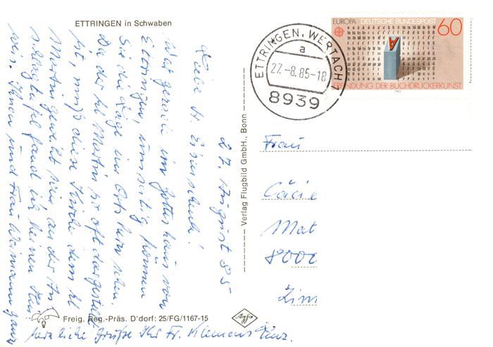 73868714 alte Postkarte Ettringen Wertach Schwaben Ortszentrum mit Kirche postalisch gelaufen Fliegeraufnahme Erhaltung siehe scans [FriedD77] KatCode: 11110009778137