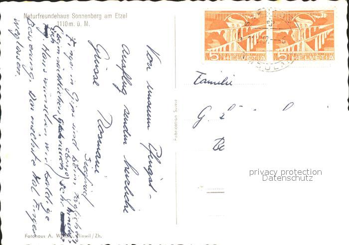 11643087 alte Postkarte Etzel SZ Naturfreundehaus Sonnenberg postalisch gelaufen Erhaltung siehe scans KatCode: 11470450485166