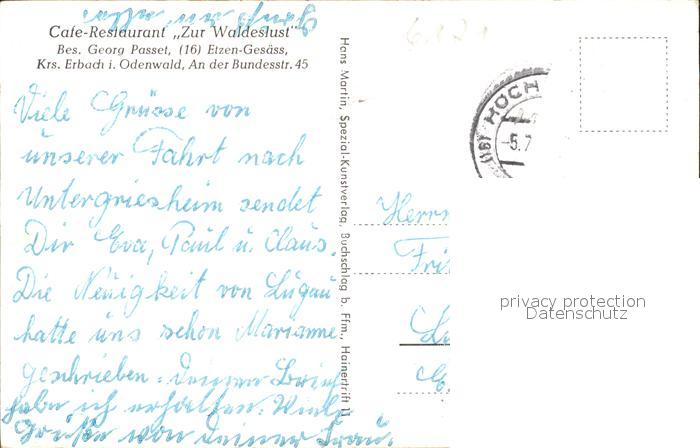 31714335 alte Postkarte Etzen-Gesaess Restaurant Cafe zur Waldeslust postalisch gelaufen Erhaltung siehe scans KatCode: 11110006437001