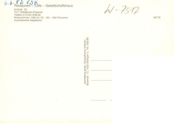 73883809 Etzenrot Waldbronn Gesellschaftshaus Restaurant Cafe Festsaal postalisch nicht gelaufen Erhaltung siehe scans [FriedD77] KatCode: 11110008215110