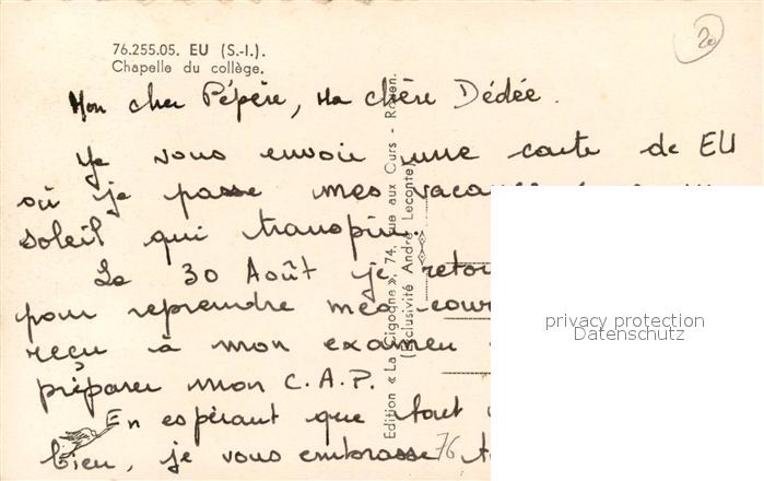 13492035 Eu 76 Chapelle du College postalisch nicht gelaufen Erhaltung siehe scans [FriedD77] KatCode: 11170076176255