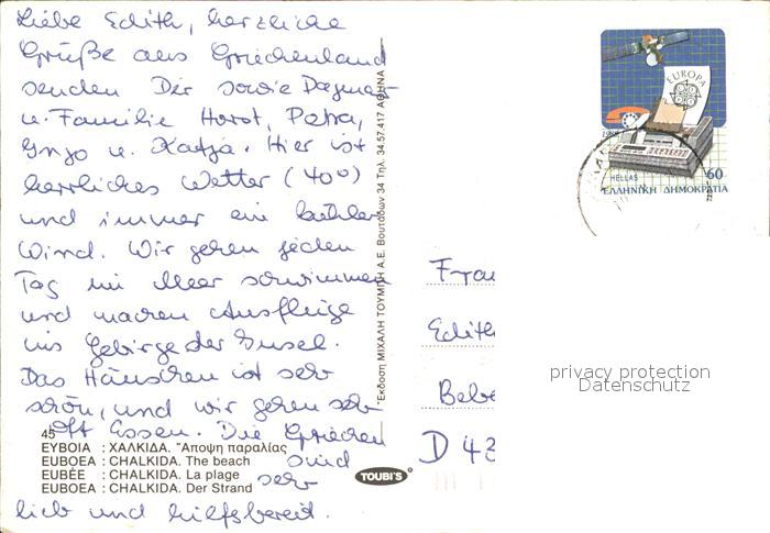 old postcard Euboea Euboea Eyboia Chalkida Strand postalisch gelaufen Erhaltung siehe scans