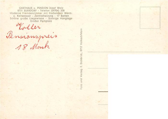 73898317 Euerdorf Gasthaus Pension Josef Wolz postalisch nicht gelaufen Erhaltung siehe scans [WerneD78] KatCode: 11110009672122