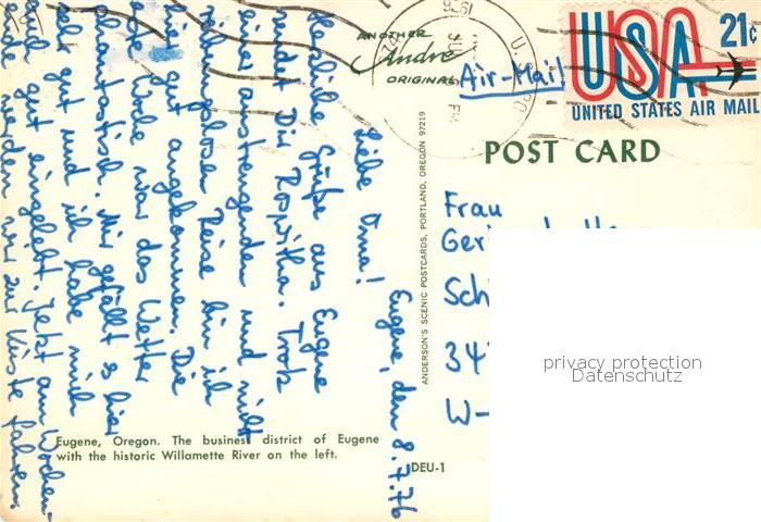 73155400 old postcard Eugene Oregon Fliegeraufnahme postalisch gelaufen Erhaltung siehe scans [WerneD78] KatCode: 14140400000000