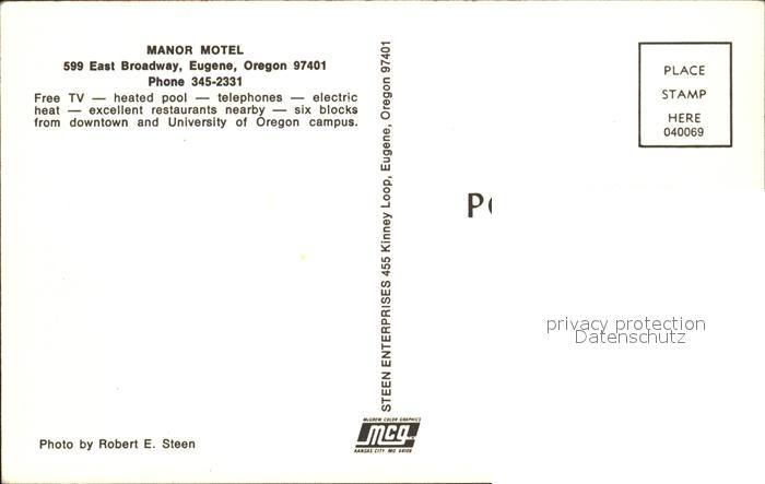 72415830 Eugene Oregon Manor Motel postalisch nicht gelaufen Erhaltung siehe scans KatCode: 14140400000000