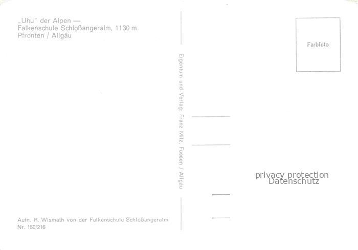74152738 Eule Owl Hibou Chouette– Uhu Alpen Schlossangeralm Pfonten postalisch nicht gelaufen Erhaltung siehe scans [IrynaD87] KatCode: 22540000001900