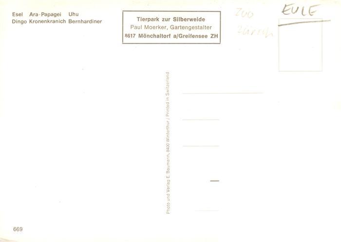 Eulen Owl Hibou Chouettes– Moenchaltort Greifensee Esel Ara Uhu Dingo Kronenkra