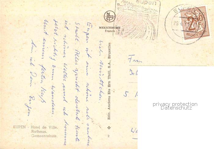 72915556 carte postale Eupen Hotel de Ville postalisch gelaufen Erhaltung siehe scans [NatalD47] KatCode: 11070063000157