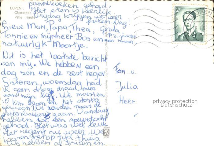 72241897 carte postale Eupen Oberstadt Ville Haute postalisch gelaufen Erhaltung siehe scans KatCode: 11070063000157