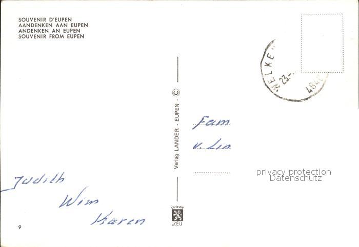 72270601 carte postale Eupen Stadtbild mit Kirche Gileppe Talsperre Sperrmauer postalisch gelaufen Erhaltung siehe scans KatCode: 11070063000157