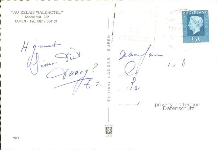 72254767 carte postale Eupen Waldhotel Schoenefeld Restaurant postalisch gelaufen Erhaltung siehe scans KatCode: 11070063000157