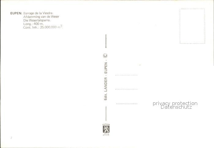 72270422 Eupen Wesertalsperre postalisch nicht gelaufen Erhaltung siehe scans KatCode: 11070063000157