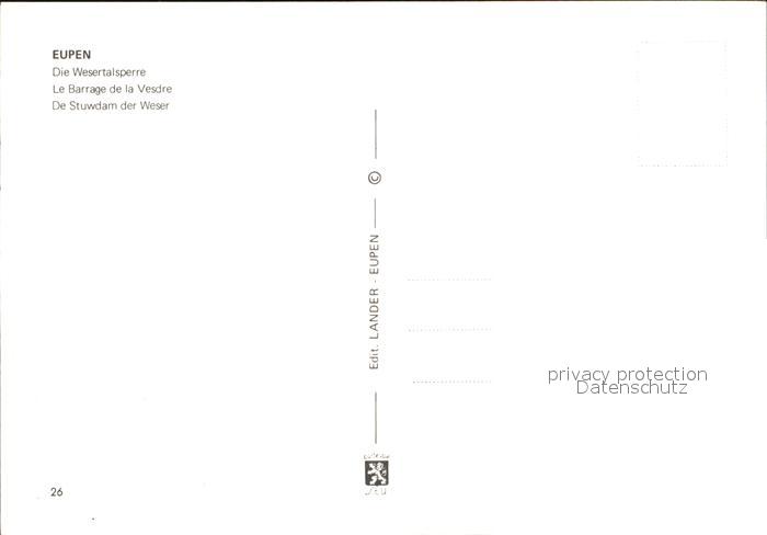 72554737 Eupen Wesertalsperre postalisch nicht gelaufen Erhaltung siehe scans [AndreD76] KatCode: 11070063000157