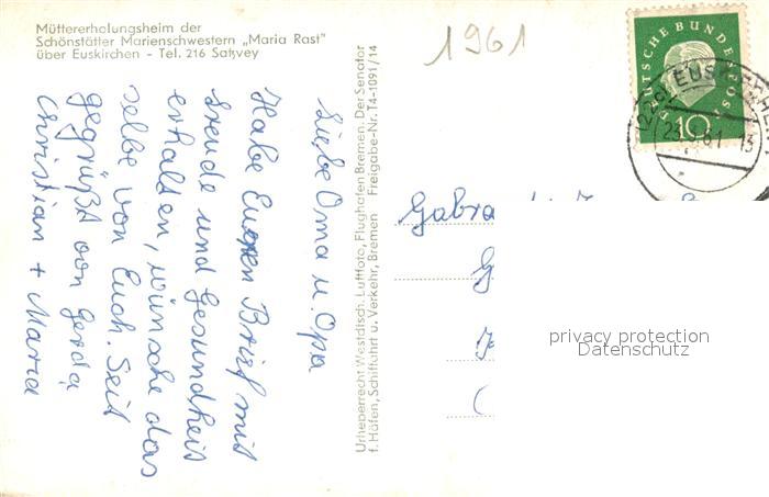 73138719 alte Postkarte Euskirchen Muettererholungsheim der Schoenstaetter Marienschwestern Maria Rast Fliegeraufnahme postalisch gelaufen Erhaltung siehe scans [FriedD77] KatCode: 11110005366016