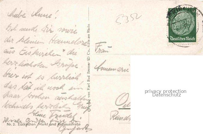 74019594 alte Postkarte Euskirchen NRW Markt und Rathausstrasse postalisch gelaufen Erhaltung siehe scans [WerneD78] KatCode: 11110005366016