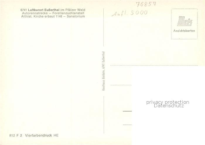 73248285 Eusserthal Autorennstrecke Forellenzuchtanstalt althistorische Kirche Sanatorium postalisch nicht gelaufen Erhaltung siehe scans [KathaD81] KatCode: 11110007337024