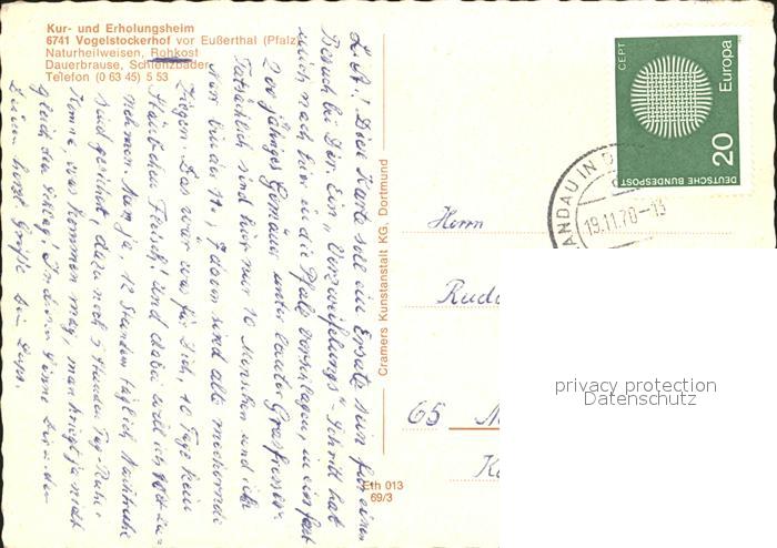 72076871 alte Postkarte Eusserthal Kur Erholungsheim Vogelstockerhof postalisch gelaufen Erhaltung siehe scans KatCode: 11110007337024