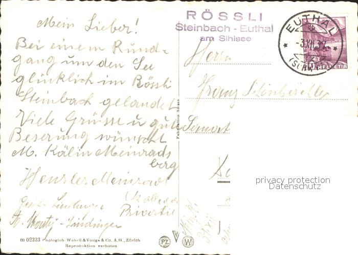 11643023 alte Postkarte Euthal Roessli Steinbach am Sihlsee postalisch gelaufen Erhaltung siehe scans KatCode: 11470170475428