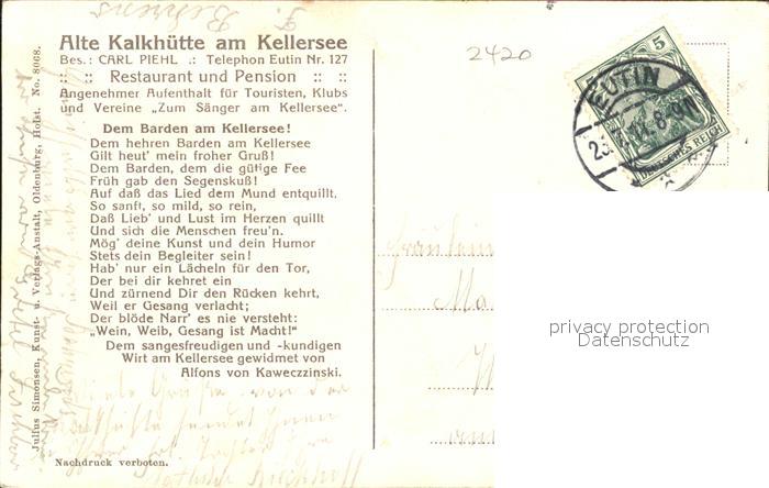 31707844 alte Postkarte Eutin Alte Kalkhuette am Kellersee postalisch gelaufen Erhaltung siehe scans KatCode: 11110001055012